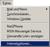1. Klicken Sie im Internet Explorer zunächst auf den Menüpunkt Extras. Es erscheint ein Pulldown-Menü, in dem Sie auf Internetoptionen klicken.