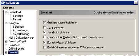 Die Abbildungen wurden mit Netscape 4.x erstellt, aber für Netscape 6.x ist die Beschreibung ebenfalls zutreffend.